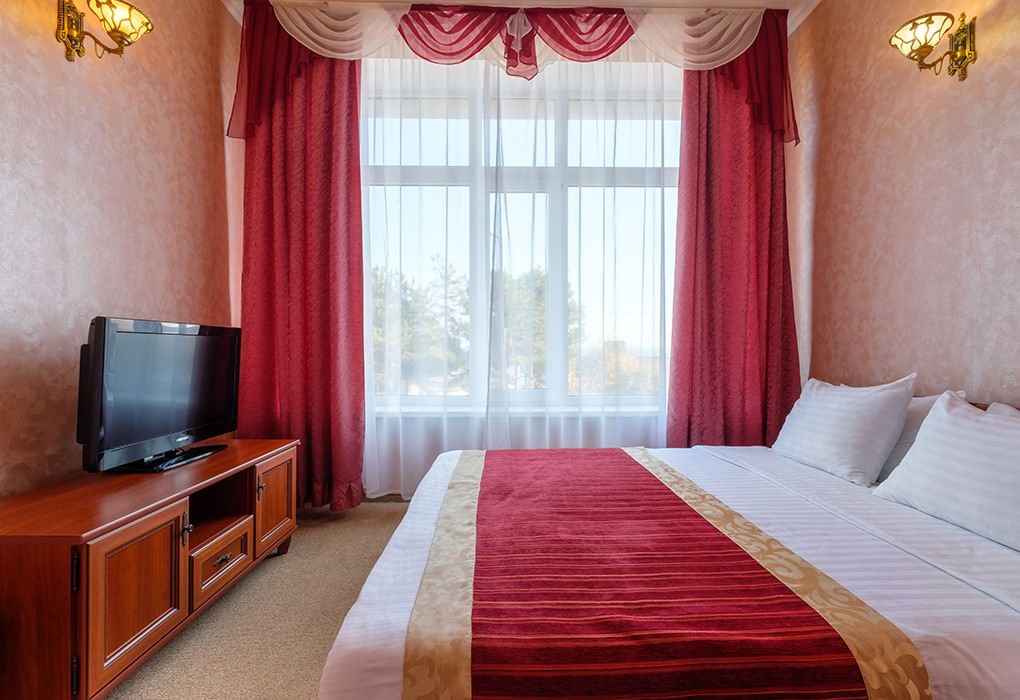 Площадь номера - 27 кв.м. 1 комната. 2 осн. места. вид на море. В номере: телевизор; холодильник; кондиционер; душ; туалет; фен; сейф; 2-спальная кровать; чайник. 1 доп. место: Кресло-кровать - Может быть установлено без ограничения по возрасту.