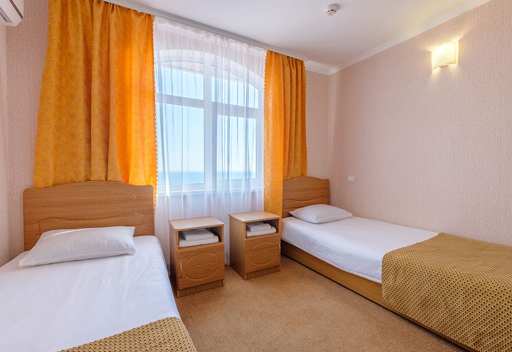 Площадь номера - 22 кв.м. 1 комната. 2 осн. места. вид на море, номера расположены на 4 этаже. В номере: телевизор; холодильник; кондиционер; душ; туалет; фен; сейф; 1-спальные кровати; чайник.