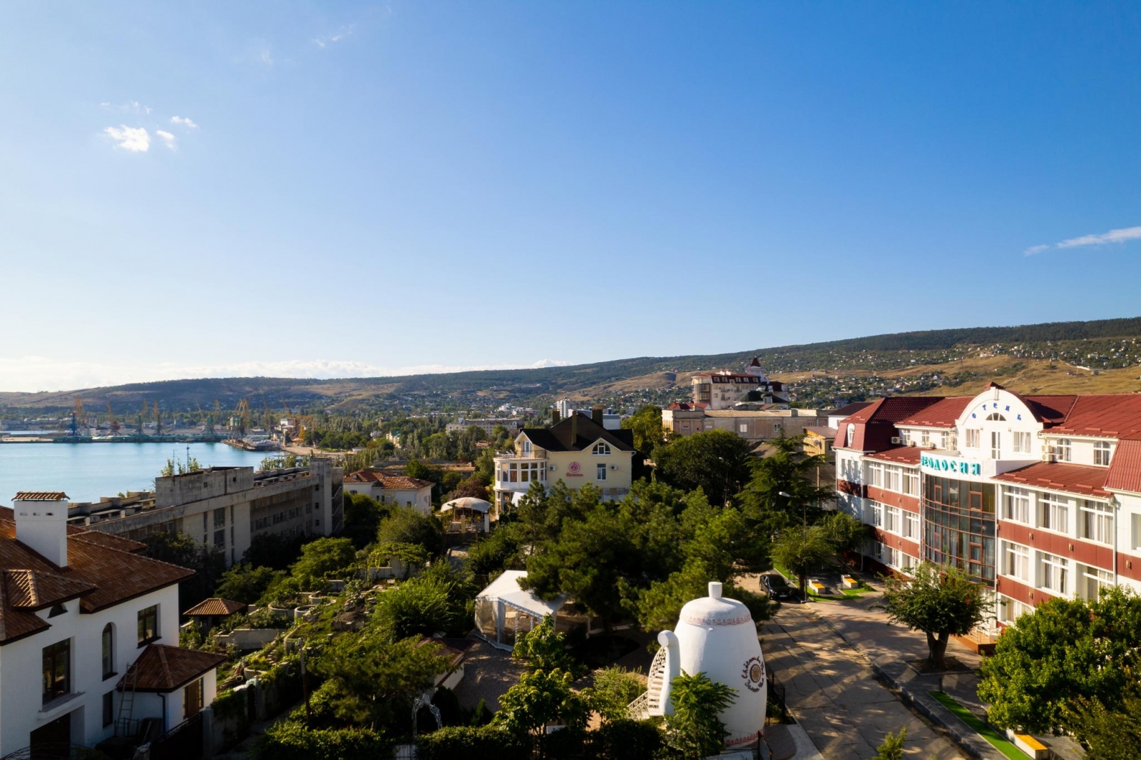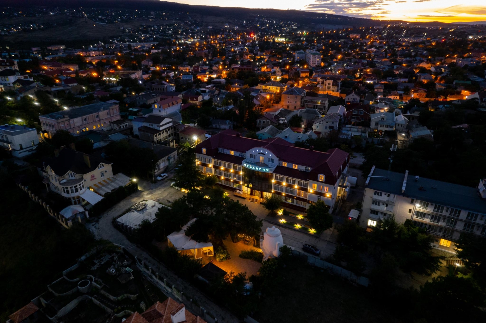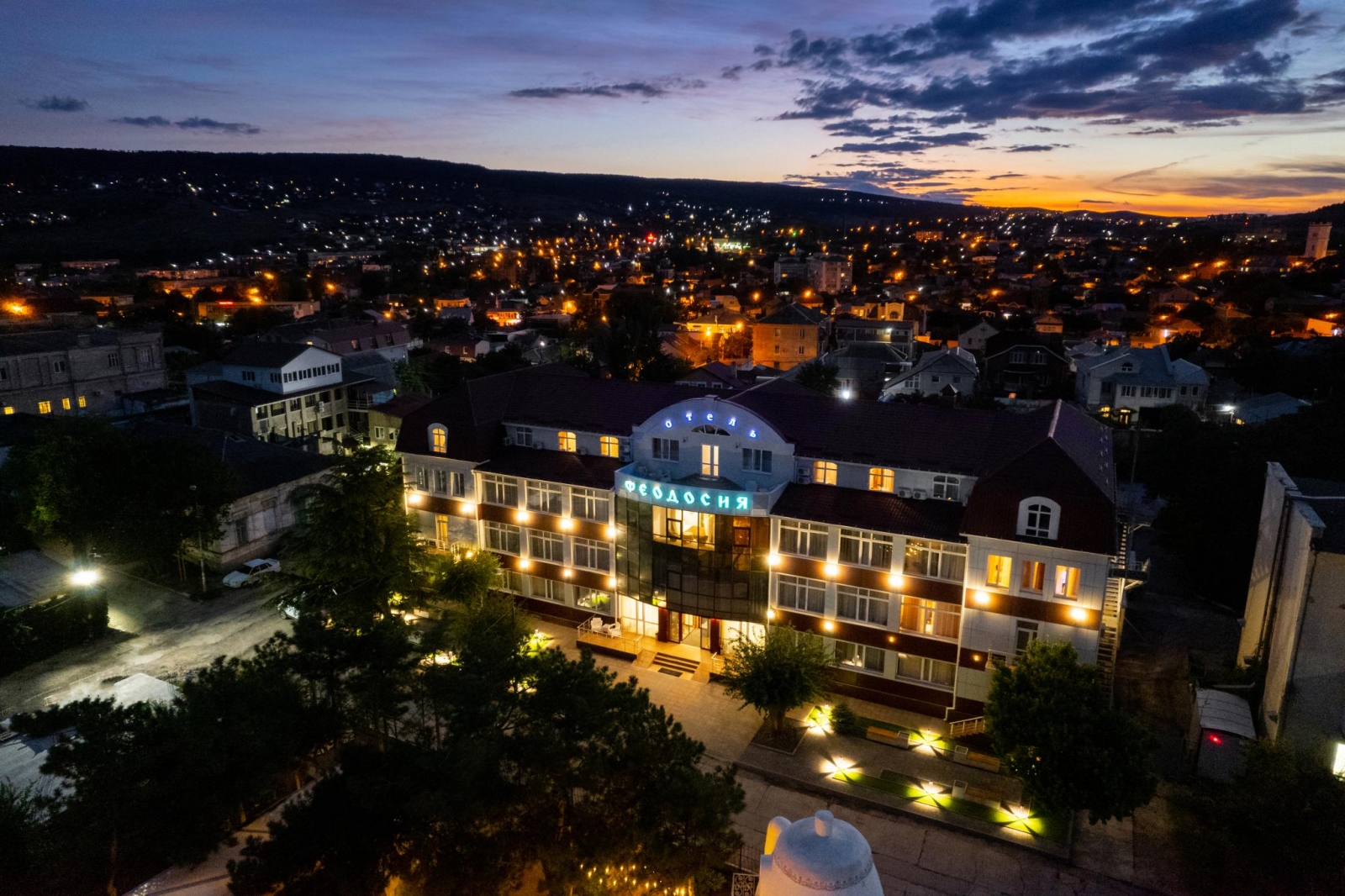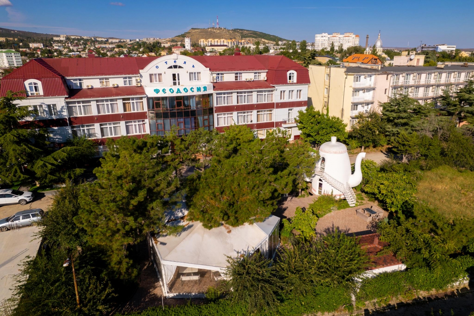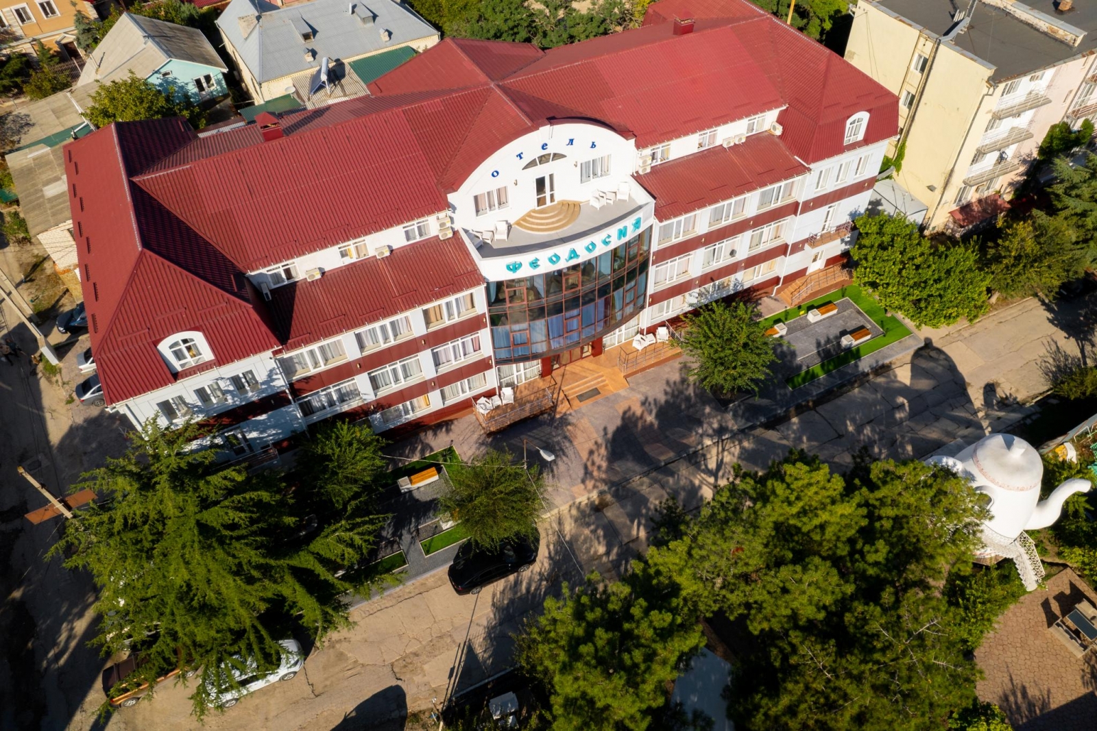Отель "Феодосия" имеет классификацию три звезды и удачно сочетает в себе лучшие традиции европейского сервиса и колорит древнего приморского города с его великолепным лечебным воздухом. Отель «Феодосия» находится в нескольких минутах ходьбы от главной набережной г. Феодосии и галереи знаменитого мариниста Ивана Айвазовского. Недалеко от отеля находится деловая часть города и железнодорожный вокзал, а также один из старейших и наиболее посещаемых соборов Феодосии - Собор иконы Казанской Божьей Матери. Отель расположен на тихой улице, что позволяет насладиться спокойным отдыхом и изоляцией от шума города и курортной зоны. Отель «Феодосия» является оптимальным местом проживания, как для деловых людей, так и для любителей туризма и истории.